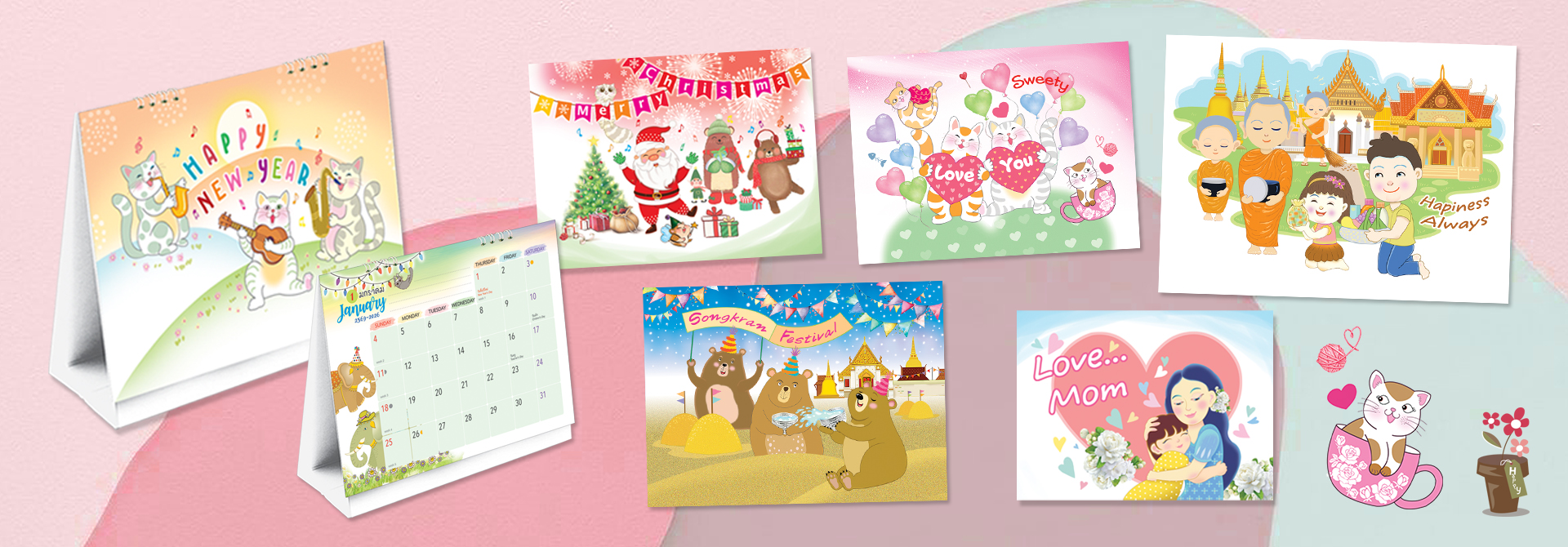 CORDIAL ปฎิทิน การ์ดปีใหม่ การ์ดวันเกิด การ์ดอวยพร กระดาษห่อของขวัญ โบว์ ริบบิ้น กล่องของขวัญ