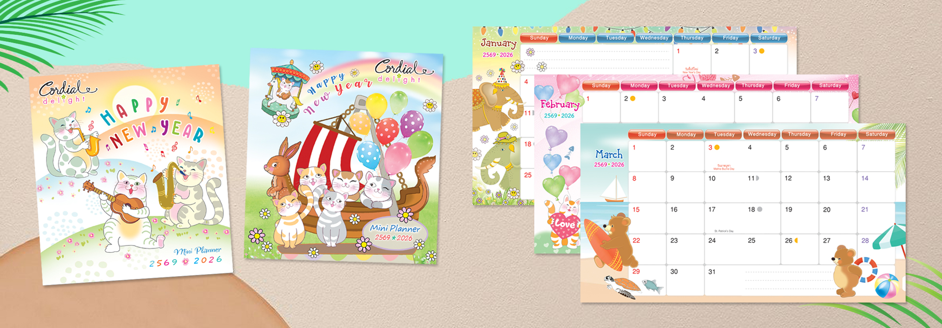 CORDIAL ปฎิทิน การ์ดปีใหม่ การ์ดวันเกิด การ์ดอวยพร กระดาษห่อของขวัญ โบว์ ริบบิ้น กล่องของขวัญ